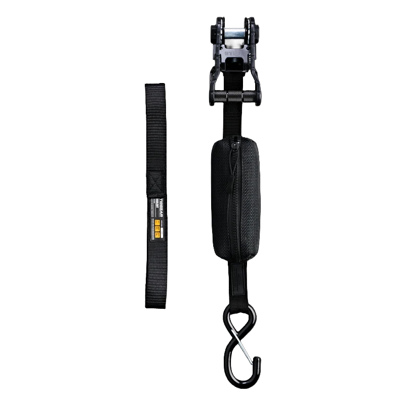 Nero, the ratchet strap built for speed, strength, and zero excess mess. Unlike traditional ratchet straps that leave you fighting loose ends, Nero features an adjustable net storage bag, keeping unused webbing secure and tangle-free.